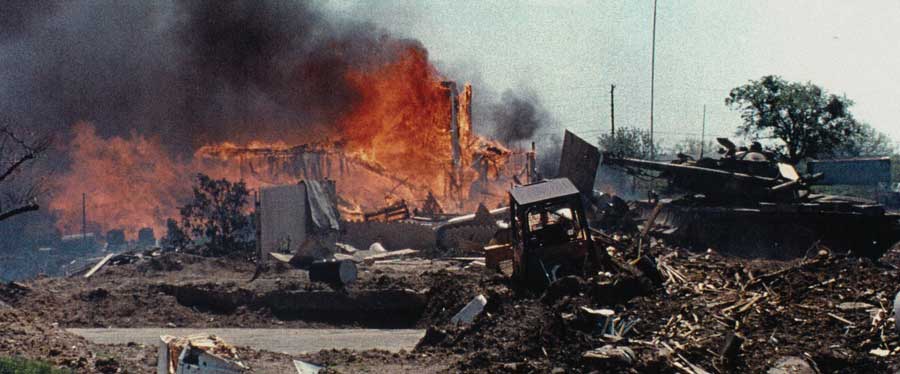 Just prior to this significant fire that burned the compound known as the Mount Carmel Center to the ground, the FBI crashed through walls with tear gas. All while stating “This is not an attack” which seems extremely counterintuitive when you watch them actually attacking the building.