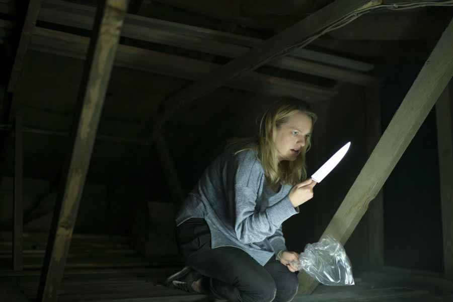 Now, we haven’t seen any scenes prior to this. We don’t know why she’s leaving, but you will have no doubt that she is scared to death. It’s obvious in the brilliant acting by Elisabeth Moss and also in the music. The score is almost a character on its own and was composed perfectly by Benjamin Wallfisch.